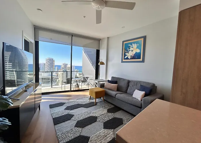 Om van uw vakantie in Gold Coast te genieten, verblijf in Above Broadbeach Casino 1Brplus Study Ocean-City Views Appartement Gold Coast, gelegen op 3 km van de Oneindigheid en binnen een korte wandeling van 10 minuten van het winkelcentrum Pacific Fair.